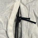 Die schmale, gerade Silhouette hat einen Serafino-Ausschnitt, der mit einem Knopf geschlossen werden kann, gesmokte Partien auf den Schultern sowie flatternde Rüschen an den Seiten optimieren den femininen Look.