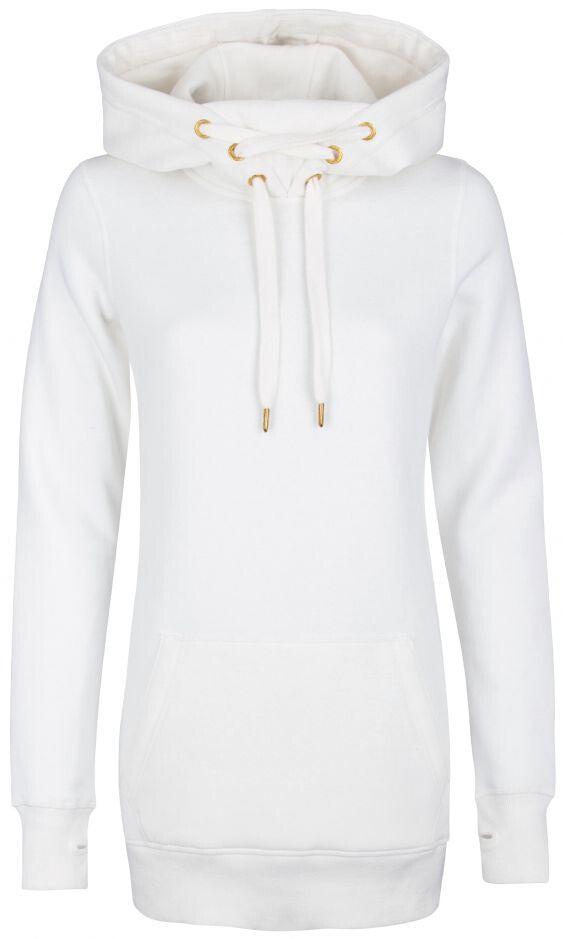Dieser etwas länger geschnittene Damen Hoodie wird zum perfekten Basic! Ausgestattet ist er mit einer angesetzten Kapuze samt Tunnelzug.