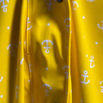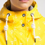 An tristen Regentagen muntert uns diese fröhliche Jacke von Schmuddelwedda wunderbar auf. Das Modell ist in marine und gelb erhältlich und ist allover mit Ankern bedruckt.