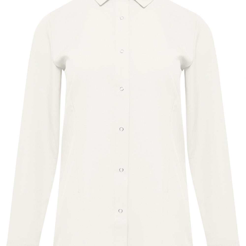 Der klassisch taillierte Schnitt, kombiniert mit der softe Viskosemischung verleihen der Bluse von usha Black Label Leichtigkeit. Diese wird dadurch zum stets gut gewählten Begleiter, ob zur Hose oder zum Rock, im Büro oder in der Freizeit getragen. Die Druckknöpfe an Knopfleiste und Manschette setzen einen leichten Akzent.