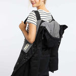 Mit der innen liegenden Taillenkordel können Sie den Mantel auf Taille bringen. Ein ganz besonderer Clou: in der Innenseite befinden sich Träger, mit denen Sie die Jacke, wie ein Rucksack, um die Schultern tragen können.