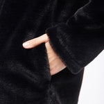 Es ist diese coole Mischung aus elegant und glamourös, die diesen Mantel so einzigartig machen. Er ist super weich und flauschig, dazu toll geschnitten. Mit einem großen Knopf, direkt unter der Kapuze, kann er lässig geschlossen werden - darunter sind Druckknöpfe angebracht. Kombiniert mit dicken Winterboots, ist der Winterlook perfekt.