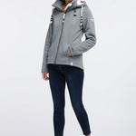 Warme Kapuzenjacke, Melierte Optik, Weiche Teddy-Innenseite, Kapuze ist in den Kragen integrierbar, Gestickter Regenschirm auf der Brust